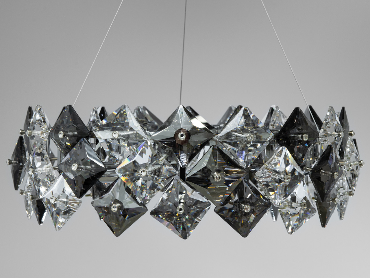 Люстри в залу часто обираються за їх здатність створювати центральний акцент у великому просторі, і ця модель ідеально підходить для цієї ролі. Вона здатна стати справжньою зіркою в інтер'єрі, надаючи йому відчуття грандіозності та розкоші. Її чисті та чіткі лінії кришталів відображають світло в різних напрямках, створюючи ефект, схожий на сяйво діамантів.