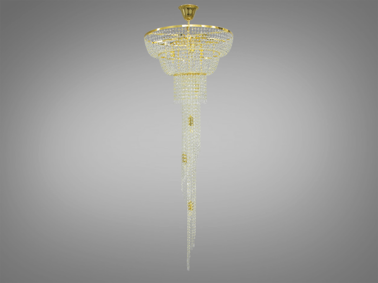 Велика каскадна люстра, дизайн якої натхненний формою водоспаду. Конструкція складається з кількох ярусів кришталевих підвісок різної форми та розміру, що спускаються від металевої основи золотого кольору. Ця люстра є виразним центральним елементом, призначеним для просторих приміщень з високими стелями.