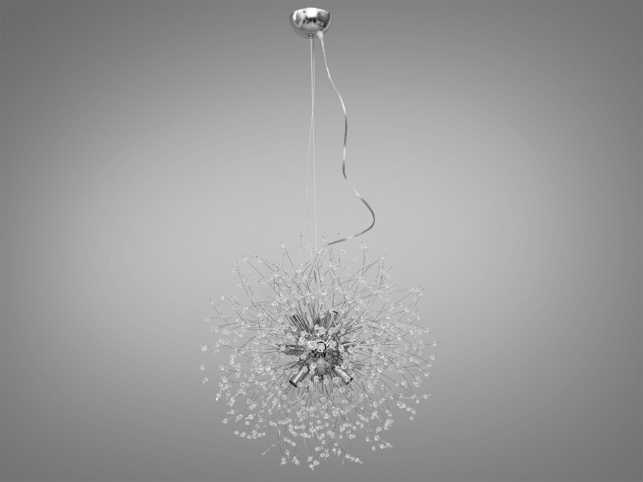 Сучасна кришталева люстра, дизайн якої натхненний формою квітки кульбаби. Конструкція складається з центральної основи, від якої розходяться тонкі металеві промені, кожен з яких прикрашений маленьким кришталевим елементом. Каркас кольору хром надає моделі легкого та витонченого вигляду.