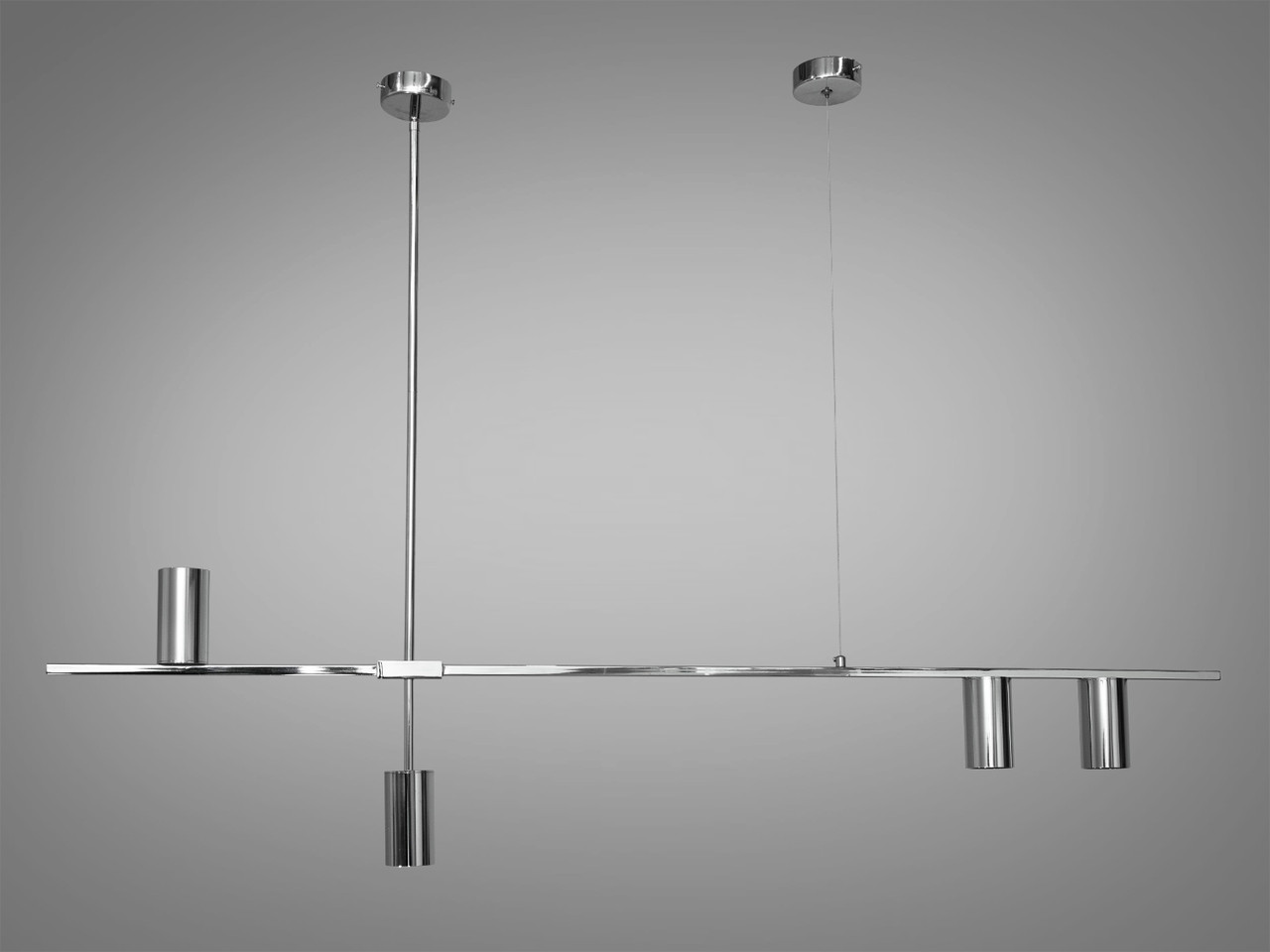 Ця сучасна люстра у стилі Loft має конструкцію з двох трубок, що з'єднані між собою. Металевий каркас виконаний у хромовому кольорі. На ній розміщені чотири цоколі для ламп.